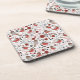 Red Grey Chickadees Pattern With Floral Coaster