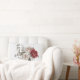 A pillow with a floral illustration. Beautiful cream and red roses gathered together in a bouquet with grey stems and leaves.
