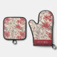 Red & Grey Floral Toile Shabby Chic Personalised Oven Mitt & Pot Holder Set