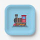 Red, grey, orange and blue colour train paper plate