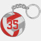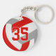 This sporty volleyball themed keychain for boys or girls features a realistic looking red, grey and white volleyball upon which you can customise the player's name, jersey number and court position, plus school or club name and mascot name in a varsity letter style font - by katz_d_zynes