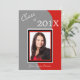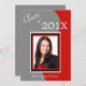 A two toned grey and bright red background with a wave design is the setting for your graduate photo framed in matching red, black, and white. At the top is your Class Year in white, and your name is in white script below the photograph. The back of the invitation is solid matching grey with plenty of room for your custom text. This graduation announcement or party invitation is especially appropriate for those whose school colour is red. It also works well for either male or female graduates. Bright, dramatic, and colourful!