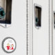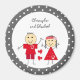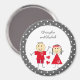 Red grey with dots stick figures and names magnet