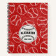 Personalise this red and white baseball patterned notebook with a name and school year for a student who lives for baseball. Choose a paper style and colour of the spiral binding to customise it even further, See other coordinating items in this design collection at KidsUnique on Zazzle.