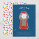 A classic gumball machine is just the treat of this playful kids birthday party invitation. Featuring a red gumball machine with bright and colourful bubble gum candy on a blue background on the front and a fun pattern on the back. Personalise with your own party details and pair with the full Gumball Party suite!