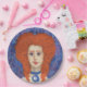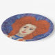 Red Hair, ginger girl rococo fibre art blue orange Paper Plate