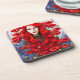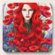 Red Hair Girl In Poppy Flowers Field fantasy art Coaster