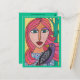 Vivid, abstract portrait of woman on 4.25" x 5.5" matte, heavy-weight card stock with eggshell finish.