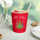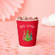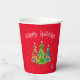 Red Happy Holidays with whimsical decorated trees and snow flakes paper cups. These charming and festive cups are perfect for holiday parties at home or office. Design by Inge Lewis, great gift for family or friends. Browse for more matching items at the ingeinc.com online store.