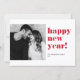 Happy New Year! Send holiday wishes to your loved ones with this customisable modern New Year flat card. It features red bold typography. This red and white New Year photo flat card is available in other colours and cardstock.