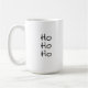 Cute black ink line drawing of a Christmas Santa with a red hat on one side and Ho Ho Ho on the other. The Ho Ho Ho text is also editable to put your own short message on the mug.