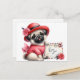 A Cute Red Hat Pug Valentines Greeting Postcard To Send