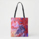Bright red, purple, lavender and creme, make a fantastic design on this tote. Red Hat Ladies will love this. Design is adapted from painting done by Joy Lomenick.