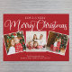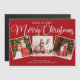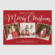 Elegant red Have a Very Merry Christmas 3 photo magnet card with beautiful calligraphy in white. This festive classic holiday three family photograph magnetic card features gorgeous script and your name underneath the cute square picture collage.