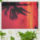 Red Hawaiian Sunset Exotic Palm Trees Tea Towel