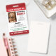 Vertical service dog badge for your hearing assistance dog in red. Easily customisable with an ID photo of the dog helping you, the dog's name and information (like breed, registration number, and microchip number), the name of the handler and your phone number and address in case you and your dog get separated. Additional text you can customise after your needs on both sides of the service dog ID badge, with a QR code and a logo template on the back.