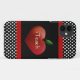 Stylish teacher's iPhone 5 case, done in black, with white polka dots, on the top and the bottom and edged with a red line. Colourful graphics of a big red heart shaped apple, in the middle, has custom white text reading iTEACH. Personalise to change the text to anything you want.