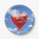 bold red heart floating in blue sky and white fluffy clouds for 25th wedding anniversary party