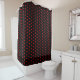 Valentine-style shower curtain with red heart balloon pattern and black background.