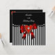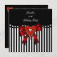 Red Heart Black White Stripe Bow Birthday Party Invitation