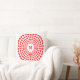 Throw pillow with seven beautiful heart circles and the M letter at the centre. Red and white colour combination. Love is all around!