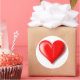 A shiny red heart with a glossy finish, casting a soft shadow for added depth.