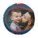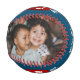 Red Heart Happy Father's Day 2 Photo Collage Baseball. Modern personalised baseball featuring 2 photos, modern and trendy typography saying Happy Father's Day Daddy, lovely red heart, names and year on a dark blue background. Add your names, 2 photos and the year and make a lovely gift for a father who loves sports.
