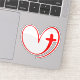 This beautiful vinyl sticker features Red Heart Intertwined With A Cross, creating a perfect blend of faith and encouragement. Ideal for personalising notebooks, water bottles, laptops, cell phone cases, skateboards or any space that needs a touch of inspiration and grace.