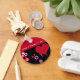 Red heart with funky circles. Customisable text and background colour.
