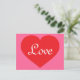 Red heart LOVE and pink postcard. The reverse side of card is blank awaiting your customised text or handwritten sentiments.