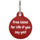Cute marriage proposal dog tag with a big red heart, on the front, with white text reading Will you marry my daddy? The back is done in solid red with white text reading Free kisses for life if you say yes! All text is ready to personalise to read what you want. What a sweet and unique way for you to pop the question.