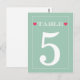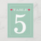 Red Heart Mint Green Wedding Table Number Cards