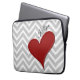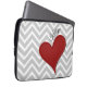 Red Heart on Grey Chevron Stripe with Name Laptop Sleeve
