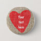 Red Heart Rustic Country Wedding Valentines BUTTON. Customise with any text.