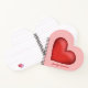 Destei's red heart shape illustration on a blush pink background colour. There is also a personalizable text area for a name. On the back there is a pattern of red hearts.