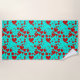 Red Heart Shapes Pattern in Vivid Turquoise Beach Towel