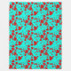 Red Heart Shapes Pattern in Vivid Turquoise Fleece Blanket
