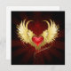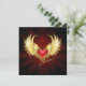 Bright red heart of an angel with golden wings shining in the dark radiant red background decorated with a pattern.