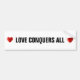 Red Hearts & Love Conquers All Text on White Bumper Sticker