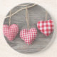 Red Hearts on Wooden Table Coaster