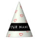 Red Hearts Pattern, Love, Your Name, Personalise Party Hat
