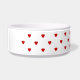 A polka dot pattern of bright red hearts on a white background. A nice romantic design.