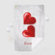 Personalise a unique towel for golfing with a Red Hearts Personalised Golf Towel. Towel design features a a pair of hearts, a soft white leafy vine against a light grey grunge background with an area to personalise with your name. Additional gift items available with this design as well as a variety of colours.