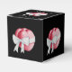 These two romantic red hearts have a pretty white bow tying them together representing two hearts in love as one. This great black wedding favour box, with white text, makes delightful and original wedding container for your wedding guests treats. These two love hearts are wrapped in a white bow and they also appear on my wedding/civil ceremony invitations with matching envelopes, there's red heart and bow napkins to match along with other wedding day accessories as well. You can personalise your favour box by adding the details of your special day on the lid. This box also makes a special gift box for the person you love for anniversary and valentines presents. This unique red heart picture is also on my locket necklaces and greeting cards.