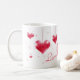 Love You - Valentine's Day mug with red glittery hearts hanging on strings over white background. This design is fully customisable. You can change the background colour, resize or remove the objects … just click on "Customise it" button.