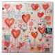 Ceramic tile with a fun mixed media style pattern. Big red hearts and various random shapes scattered around making a delightfully cute pattern.