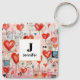 Red Hearts Whimsical Love Pattern Monogram Key Ring