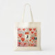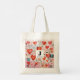 A tote bag with a fun mixed media style pattern. Big red hearts and various random shapes scattered around making a delightfully cute pattern.