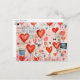A postcard with a fun mixed media style pattern. Big red hearts and various random shapes scattered around making a delightfully cute pattern.