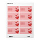 Destei's red hearts in different sizes on a blush pink background colour. There is also a personalizable text area.